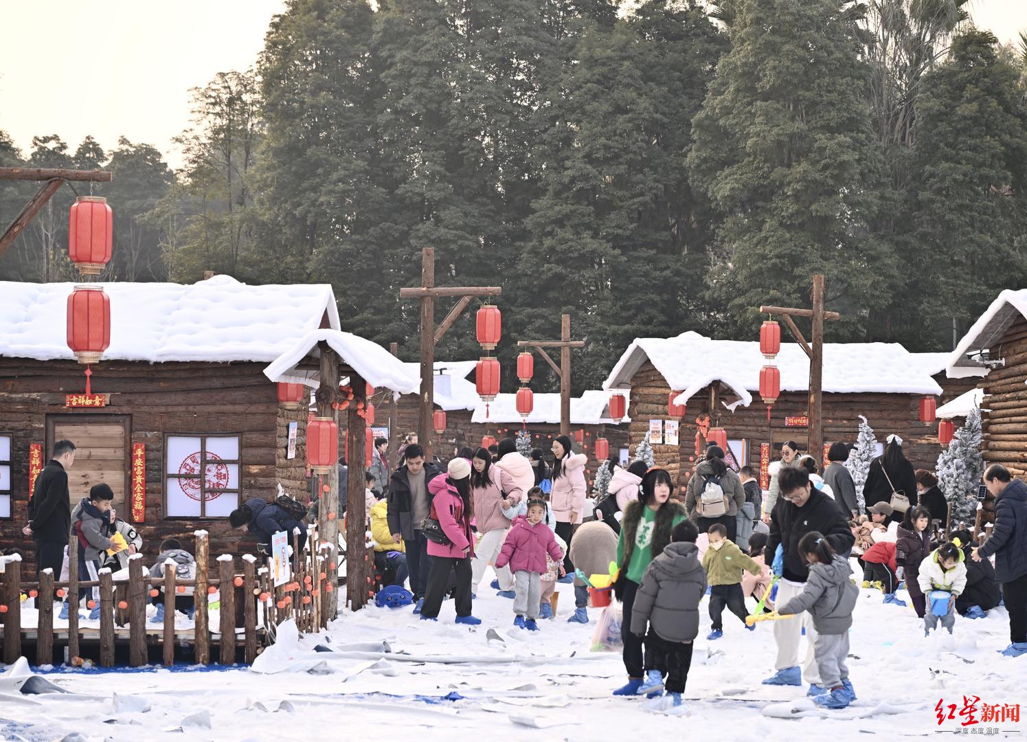 如梦似幻的冬日雪景,成功吸引大量市民、游客前往打卡体验,也点亮了成都冬日消费市场:从年轻人拍照打卡到亲子家庭雪中嬉戏,形成了全客层覆盖。