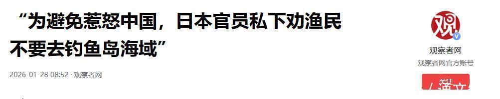 2026-01-28 08:52·观察者网 “为避免惹怒中国,日本官员私下劝渔民不要去钓鱼岛海域”