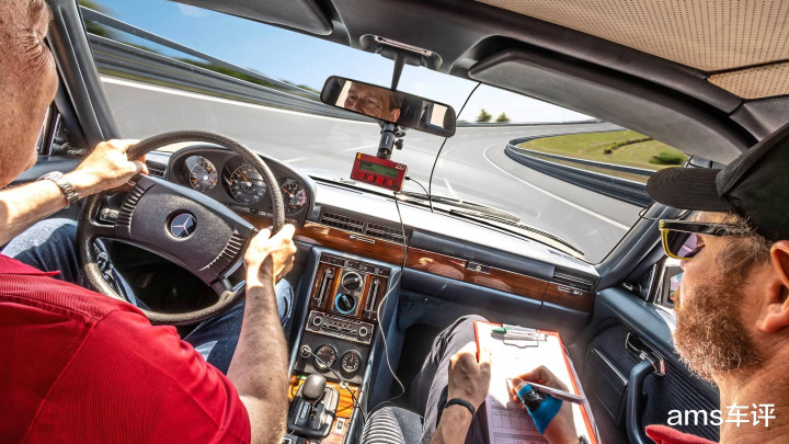 450 SEL 6.9整备质量为1939千克,算得出功重比6.78千克/马力,但这数字意义不大。更重要的是实际表现:0~100公里/小时的加速时间为8.3秒,比1975年的测试慢了0.1秒;0~140公里/小时则多出0.5秒——每十年仅慢0.1秒,完全可以忽略。